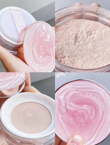 我是不喜欢在夏天化水光肌的妆感,看起来会有点油腻,所以我平时就会打造焦柔雾面的妆感。打造清透的雾面妆容,我觉得还是要看散粉给不给力,用过很多散粉,贵的便宜的,就喜欢美康粉黛家的散粉,控油效果超好。
