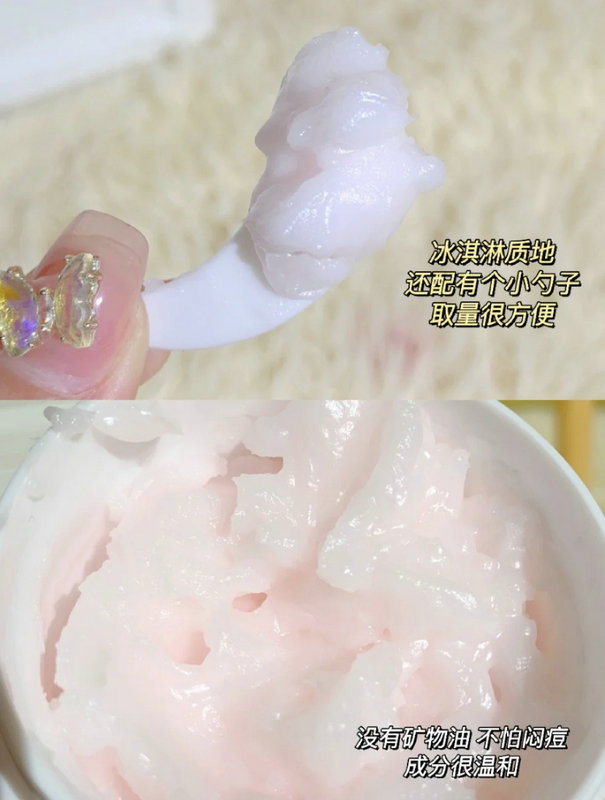 粉粉嫩嫩的冰激凌膏~用小勺子取一点往脸上揉搓就行了没一会那些彩妆就被溶解了!接着用水 涂抹,瞬间就乳化了最后再清水直接冲洗!卸完整张脸都能自由呼吸黑头闭口都不见了我也可以拥有粉嫩肌!这黑头挖掘机太绝了!
