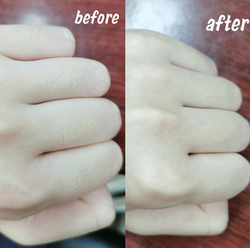 我的体毛是属于偏旺盛的,用完脱毛仪后用身体乳光光滑滑、白白嫩嫩的,超级好摸,超级喜欢这种感觉。我现在用唇周围、四肢和腋下部位,第一次用的一档没有感觉,后面一直用三档了,除了腋下会有一秒秒的微痛感(完全可以接受),第一次不熟练时间久点,现在也就10来分钟,果然熟能生巧,一定要坚持,不做猕猴桃女孩!
