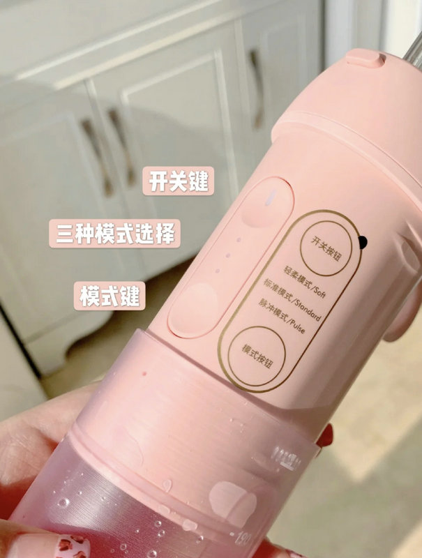 开机有个三秒渐变强的水压设计,真的hin适合正畸或者敏感的宝宝用的时候慢慢适应它的冲牙力,而且机身能收纳喷嘴,旅游出差带出去都敲方面,也不怕弄脏平时我吃完饭都用它清理牙缝。