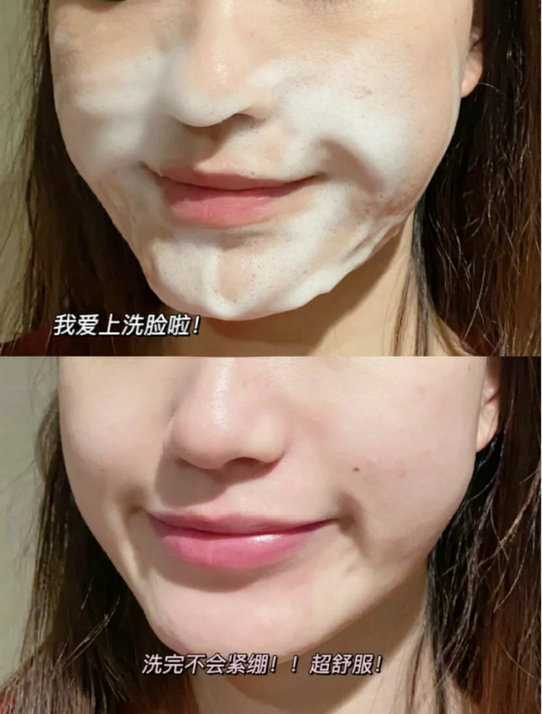 我是混合肌,然后偶尔会长痘痘。我对洗面奶没什么要求,能清洗干净然后感觉滋润度过得去就行了,但是使用感受还是很惊喜的。闻起来没什么香精的味道,用着安心,起泡绵密(我使用起泡网打的泡沫),洗完也不会假滑。最重要的是,洗完之后保湿度真的很棒,洗完什么都不做过一段时间也不会觉得干。