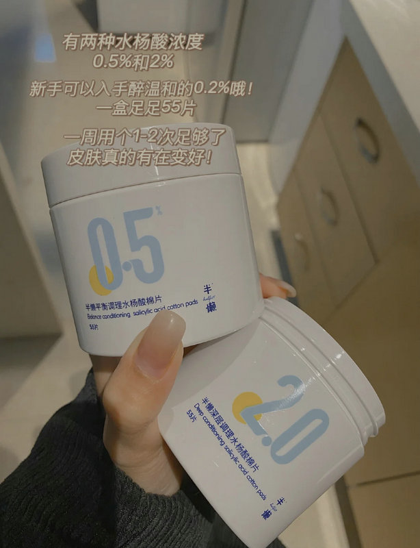 之前我用过其他款水杨酸棉片也是0.5的这款感觉更适合我,并且这一款温和不刺激,之前用的那一款我上脸会有刺痛感,而且半懒这一款的效果也是很不错的。