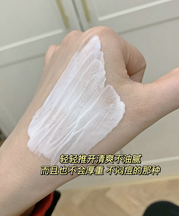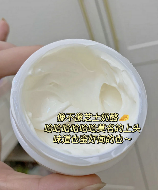 它的质地好想芝士奶酪莫名的治愈哈哈哈哈哈哈!延展性蛮好的,轻轻推开水水润润的还蛮好吸收的,而且不会厚重的那种,在脸上蛮清爽的不会闷痘!!