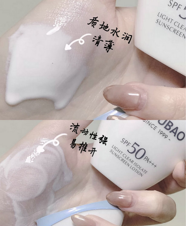 除了防晒效果给力,美肤宝水薄清透隔离防晒露的肤感也很圈粉!港真,我用过很多大牌防晒,都没有这款国货这么轻薄水润,它抹在皮肤上很快就能被吸收,不会留下任何黏腻的感觉。