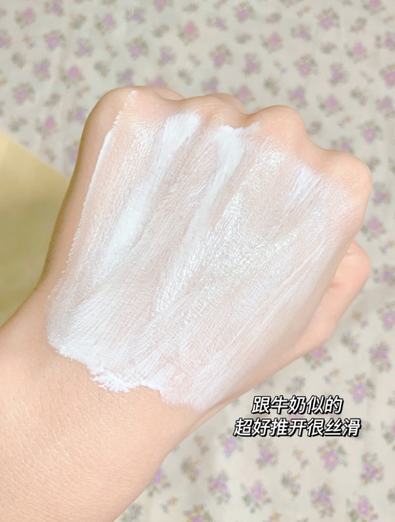 挤出来是冰淇淋质地,很丝滑的感觉,水润易推开因为不含任何添加剂,闻起来没有味道,而且吸收快,润而不腻,涂完肤色明显提亮了一个度!