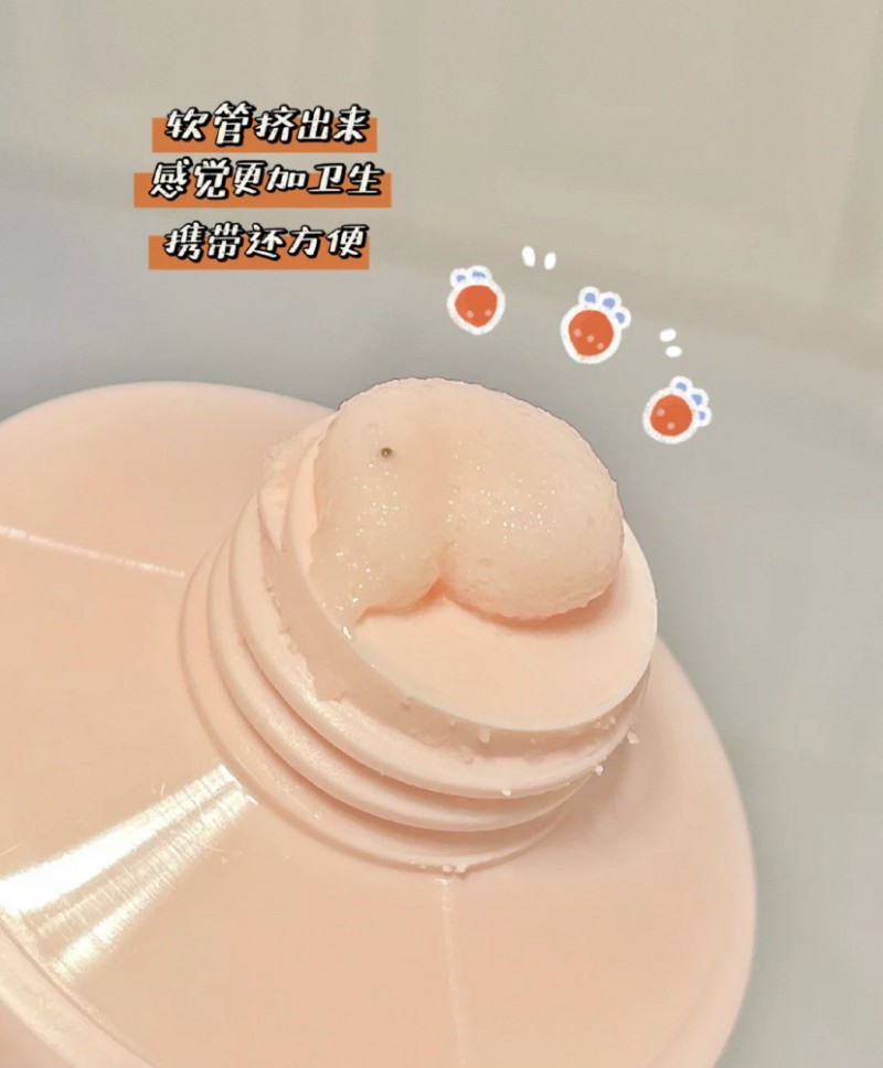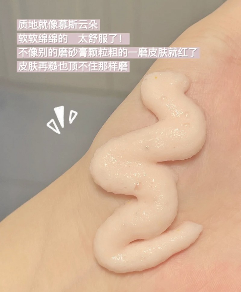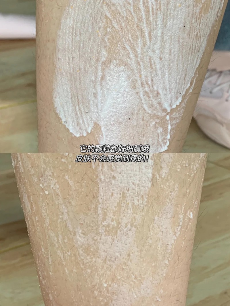 这款磨砂膏里面有大量的维C和guo酸,大家都知道 vC有妹白提liang肤色的功效,果酸有祛处废旧老角质,滋润肌肤的作用。两者结合到一起简直就是“王头”的组合,一举两得。之前用其他的磨砂膏里面的小颗粒溶解不了。这款就不一样了,里面是,的磨砂颗粒,揉一揉就溶解掉了。