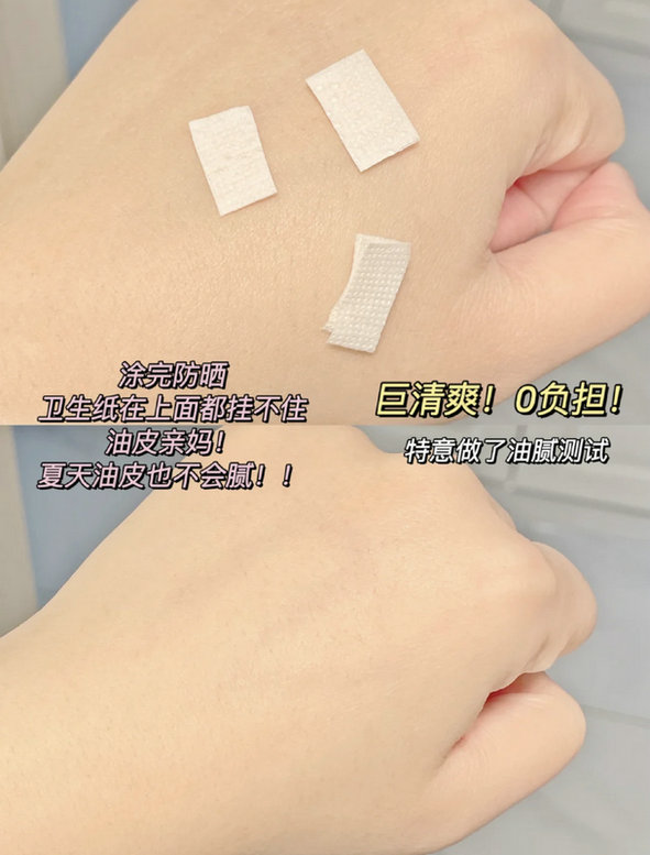 总结一下,这款防晒霜成分安全,敏感肌放心使用,质地清爽,不黏腻,油皮闭眼入手!成模快,使用方便,后续上妆不会搓泥卡粉,价格实惠,记得领劵,很划算的哦~