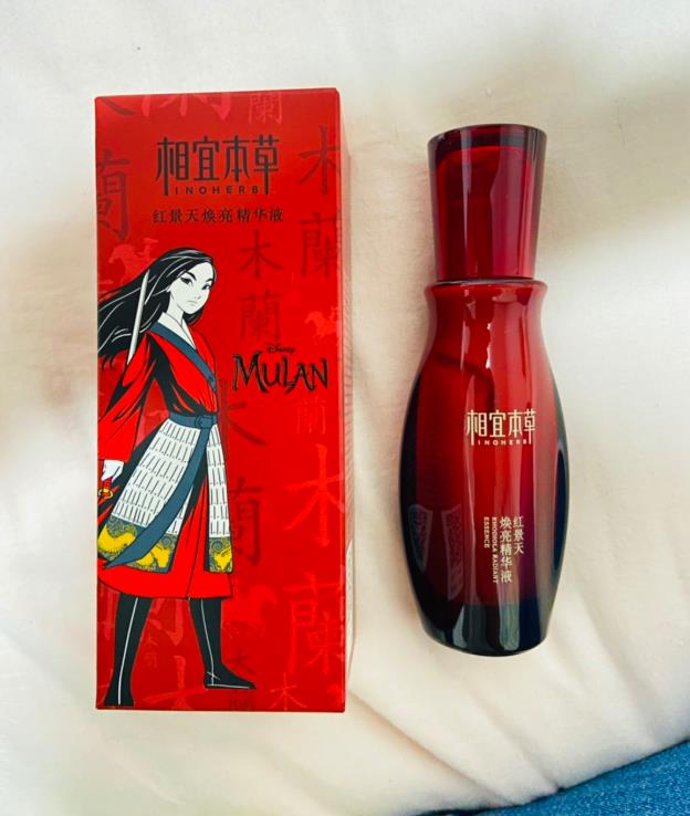 瓶身颜色是暗红色,味道感觉跟之前版本的味道不一样,新版本一样喜欢。送了盲盒与导入仪,花木兰卡片也很可爱。
