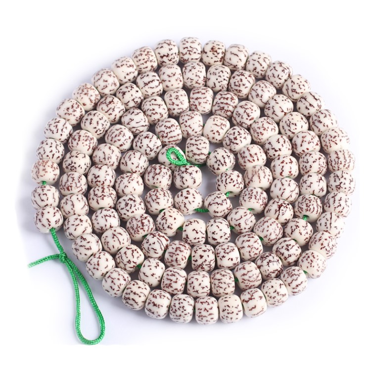1、菩提根和菩提成品珠颜色都是洁白如玉,看起来十分相似,菩提根偏米黄,半透明,白玉菩提偏奶白,实心不透明。