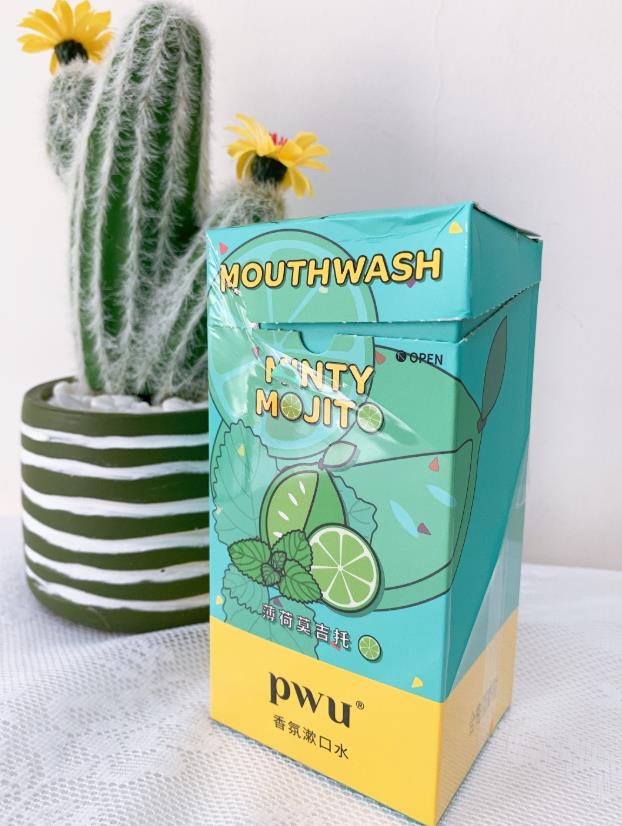 我是特爱吃重口味东西的类型,以前觉得没什么,刷刷牙就好了,但是前段时间我发现智齿很臭,牙刷刷了起不了多大作用,感觉可能是牙刷有些地方根本够不着吧,所以决定每天用漱口水漱一漱,看能不能改善。这款pwu果汁漱口水我是在抖音上看到一个还蛮喜欢的博主推荐的,就买了盒回来试试。