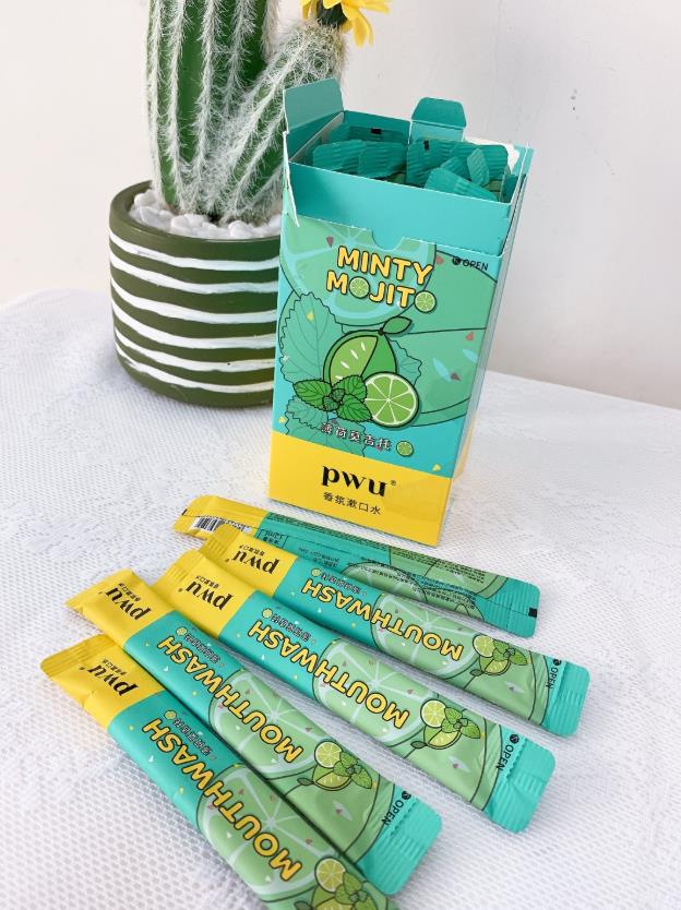 pwu果汁漱口水一袋的量刚好一口,蛮合适的,颜色是透明的,用完后嘴巴里面满满的香味,不吃东西能维持三四个小时,掩盖异味的效果还是蛮好的。