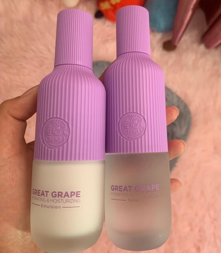 春纪大葡萄补水保湿爽肤水:我喜欢叫它大葡萄水,这款水的看似很稀,但每一滴都非常有质感,毕竟是含有很有“质感”的水水,但是用起来又不会有粘腻感,推开就能轻松吸收了。我每周会定时用它来敷水膜,这款水的吸收力非常强悍,刚用完就皮肤就变得非常柔软,用完又不腻,超级推荐给任何肤质使用。