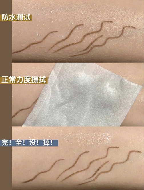 试色也很美,放水下冲了还用纸巾擦拭完全不掉,一点都没变化!我上眼用了咖啡色属于很自然的眼线,黑色就会放大效果比较好一些..