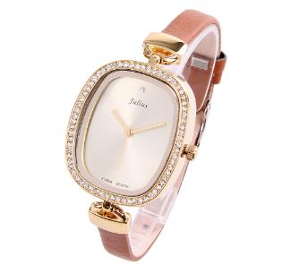 Julius聚利时是采用日本先进的电子技术,经精密科技生产而成,质量稳定。产品款式时尚、休闲,彰显青春气息和个性风格,有方形、圆形、长方形、不规则形状等;表盘颜色以经典咖啡色、永恒黑色、高贵金色和时尚银色为主,再镶嵌锆石作为点缀,表带采用同色系进口防水PU皮,整体效果高贵典雅而又个性十足,适合现代都市白领女性佩戴。Julius聚利时韩版时装女表让手表不仅是计时,更是腕间的一种时尚元素。