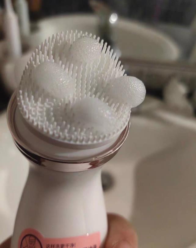 花皙蔻小白刷用来清洁面部非常棒的!!很干净平常用手洗脸还是会有细菌的刷头也非常柔软用在脸上也不会觉得很刺激,还可以360度旋转刷头给力按压就可以出泡泡啦非常方便喜欢!!觉得很舒服,皮肤不会很紧绷,出来的泡泡也很温和,使用感很不错。推荐入手!