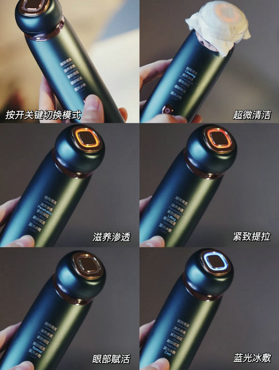 功能很多,可以一机多用,眼部功能感觉效果还不是很明显,想要淡化黑眼圈还是要坚持使用,滋养渗透模式也是温温热热的,吸收很快特别是搭配面膜的时候。