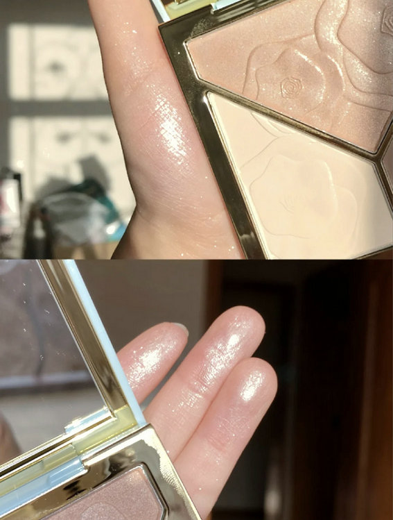 香槟色细闪阳光下敲美,打在鼻头波光粼粼滴,这个珠光真的很绝,又拔高了鼻梁,又很自然;