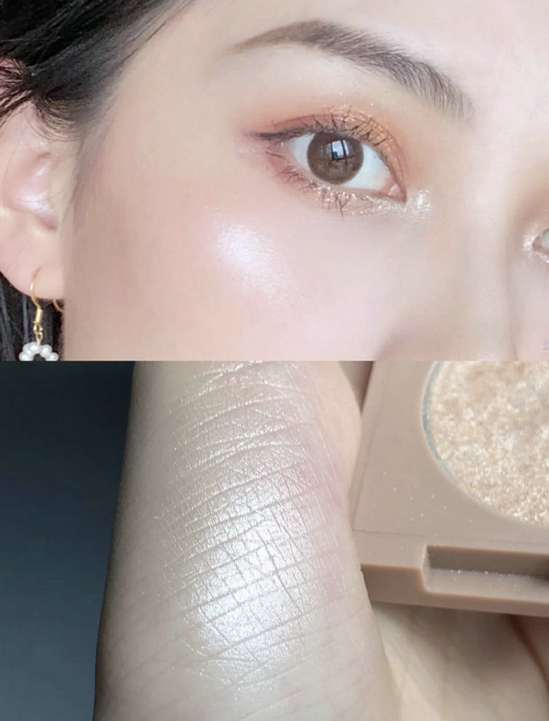 这次的高光也是一样没有让我失望!两个色号质地有点不一样H01比较细腻;H02是那种钻石闪片的质地,粉雾海本人,想要高光亮就用叠涂大法,只要先涂一个比较细腻的,高光再叠加钻石闪片质地的,你就会闪到不行!