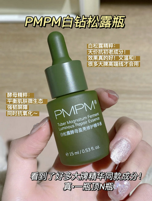 我入手这支 PMPM白钻松露瓶是闺蜜推荐的,在旗舰店入手的,还有优惠劵,真的很划算,来说说我的大使用感受。说它是大牌精华平替都有点委屈它了!覆盖了抗初老、抗氧化和、紧致嫩肤!一挑三都不成问题,一百多的价位!真的是平价抗初老精华中的战斗机!