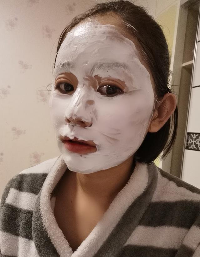 大白泥用起来也是温和不刺激,打开盖子能闻到一股淡淡的中药味,奶油状质地,细腻好推开,涂在脸上不会拔干,挺水润的。