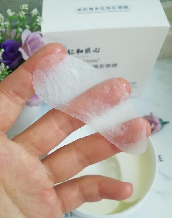 眼膜质地像是果冻,摸着软软的很有弹性,敷上去是凉凉的很舒服,可以缓解眼睛疲劳,补水的效果很不错,现在因为用了这个眼膜,我的肌肤细纹才慢慢被抚平,眼周特别水润,对付黑眼圈也是很有效果的,现在看着黑眼圈慢慢淡化了。