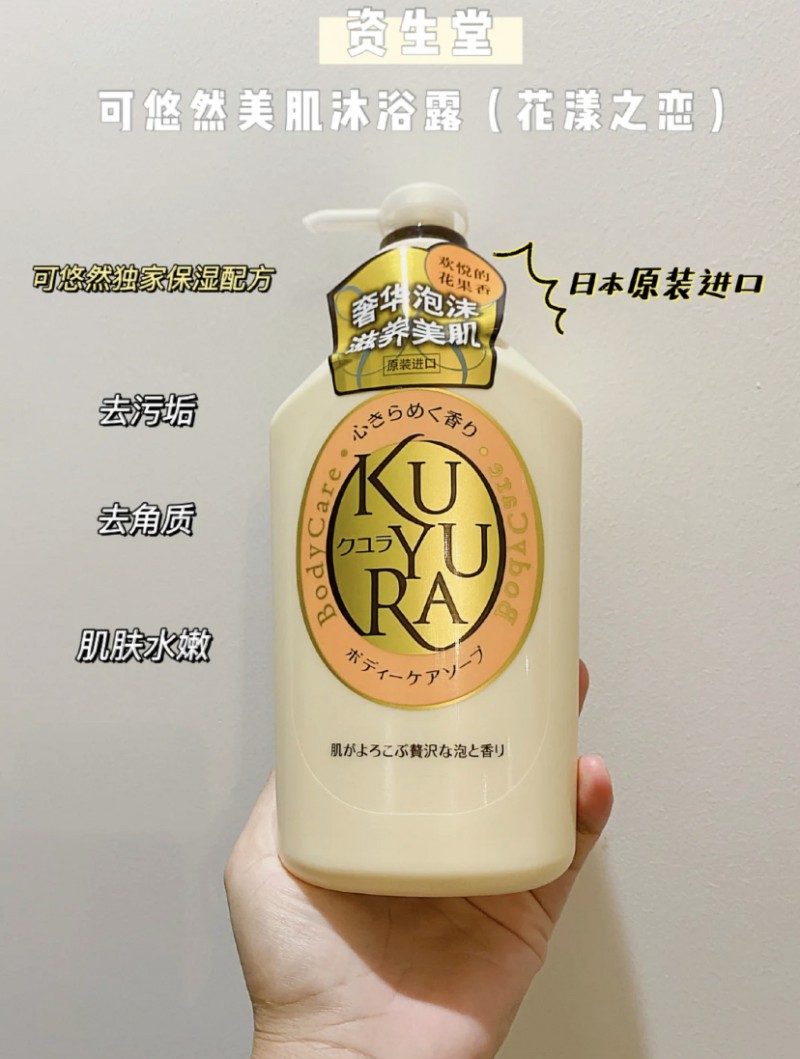 可悠然是日本资生堂旗下的高端洗护品牌,使用感一流。泡沫轻轻一打就很绵密柔软,质地超细腻超温柔~洗完以后,皮肤角质清洁的还蛮轻松干净的全身的肌肤都变得白净水嫩不少~除了有可悠然独家保湿配方之外。