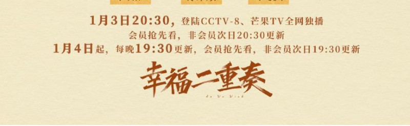 1月3日20:30登录cctv8,芒果TV全网独播。会员抢先看,非会员次日20:30更新,1月4日起,每晚7:30更新,会员抢先看,非会员次日晚7:30更新。