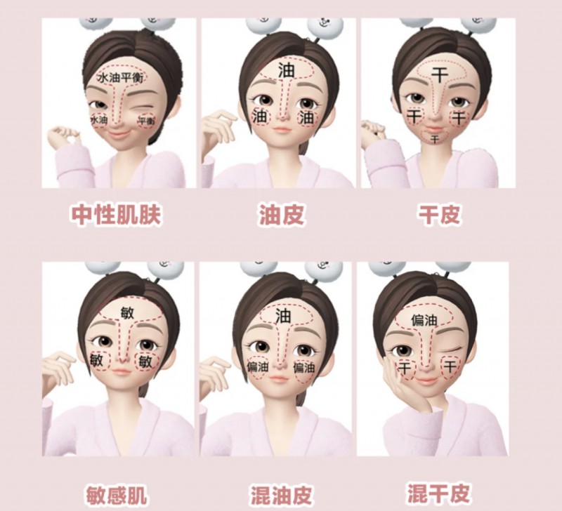 要根据自己的肤质选择。皮肤一般分为中性、干性、油性、混合型、敏感性五种类型。