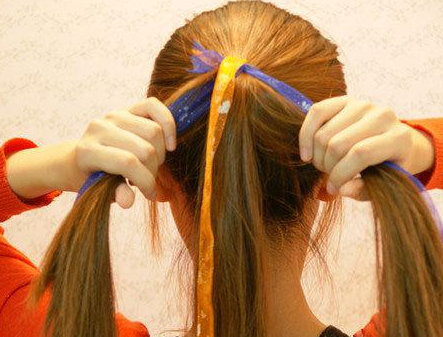4Step4:接着取出最左侧的两股发股,对扭两节,接着每扭一节,都将左侧手边的头发加一股进去进行对扭。