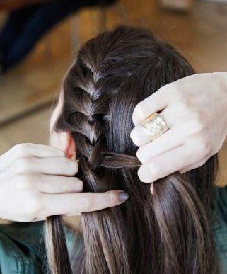 5Step5:一直扭到头顶处垂下的发尾,也将其加进去,接着把左边剩下的头发加入进去。