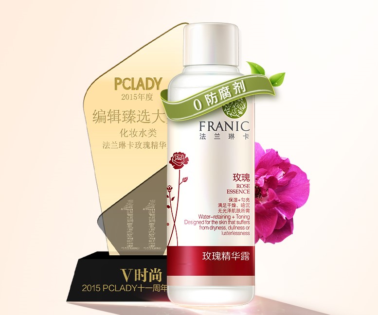 用户2:法兰琳卡玫瑰精华露120ML,法兰琳卡新近推出的新品玫瑰皇后露(又名玫瑰精华露),作为国内一个比较好的护肤品牌,法兰琳卡的口碑也是好的不要不要的~~它拥有最纯净的原材料和最前沿的研发科技,主打"自然护肤”,对于敏感肌来说,自然取材的护肤产品使用起来会更安心法兰琳卡,十年专注自然护肤,从原料、采摘、萃取、配方、加工到包装,减去多余化工添加,以"让自然、健康、纯净的护理肌肤。