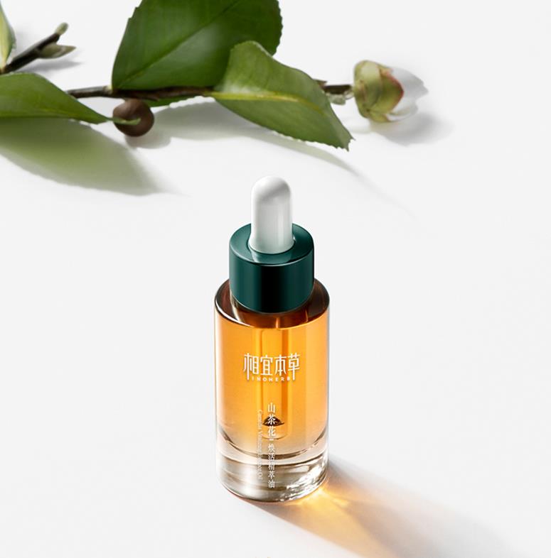 3. 相宜本草植物复方精油,凝聚7种珍贵的精萃油:山茶花籽、苦橙叶、柏木、天竺葵、玫瑰、乳香、柠檬草加荷荷巴油精心配比调制而成。