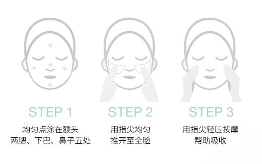 2. 将保湿精华露均匀的搽在脸上,注意精华成分要避开眼周肌肤,静静等待精华成分吸收。