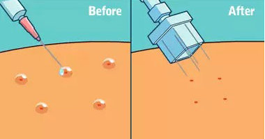 水光针,通过水光注射仪器把玻尿酸分子注射到皮肤里面,可以在真皮层直接补水,并形成储水点,使肌肤满水复活。跟平时的的表面补水方式不一样,它直接在皮肤里面补水,没有蒸发,没有浪费,没有补水不到位,一次水光针补水可以抵得上好多次补水面膜护理。