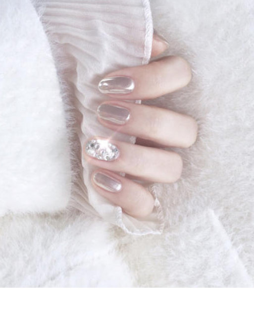 极光粉粉末本身是没有颜色的,但是涂在指甲上,会因为光的照射显示出不同的光泽。所以在使用极光粉之前,先使用有色的甲油胶给指甲进行上底色,底色可以选择同色系的浅色,比如裸色或者浅粉色,美甲的效果就会比较清透,有一种仙气的感觉,也可以选择一些深底色,最终的效果就会深一些,透着微微的底色。