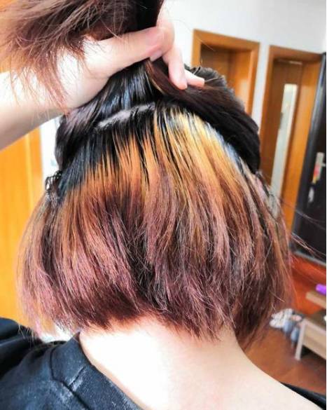 3、在染色时要对头发分层分区域,根据每个人的发量、发质和颜色进行分层处理,头发多的人可以多分几层,头发少的少分几层,依自身情况而定。