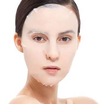 将面膜纸置于容器中,用适合自己肤质的化妆水注满容器,待面膜纸吸收水分、膨胀开来,几分钟后即变成和脸形一样大小的面膜纸。洁面后将面膜取出,展开面膜,轻轻地敷在面部。静待10分钟面膜干透后,从下而上剥离,然后再涂少许润肤霜,即可让皮肤水嫩净白。