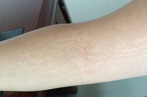 肥胖纹:肥胖纹主要是平的,颜色有点白,有纹路。