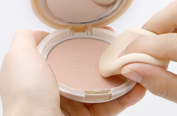 针对饼状的定妆蜜粉,一般我们使用海绵进行定妆,同样也是取粉之后,在手上先按一下,抖掉多余的粉末,再往脸上“按压”来定妆。
