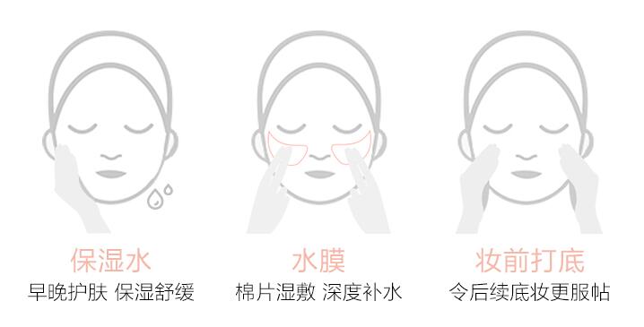 (3)保湿水:顾名思义最大作用就是给肌肤补水,还可以用于敷水膜,因此推荐给肌肤干燥的人群使用。