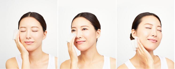 将化妆水倒在化妆棉上,擦至全脸,注意脸部的每个角落都要抹到哦,眼角嘴角,甚至脖子和耳朵。