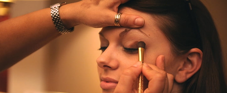 4、还可以通过化妆来改善脸型,修容就能够做到,根据自己的脸型选择与肤色相近的修容,加深面部突出的地方,就能产生瘦脸的效果。