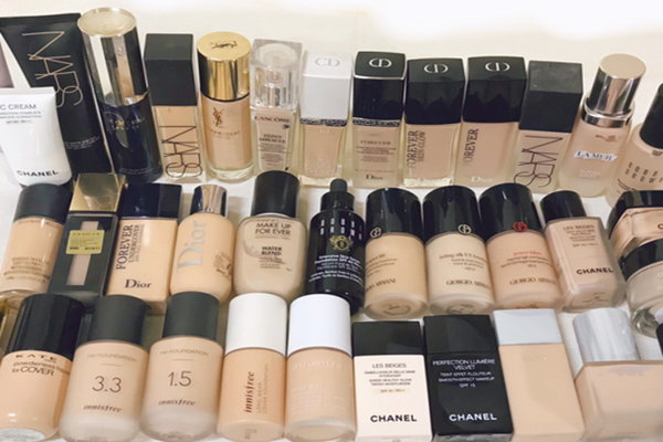 在手背试粉底