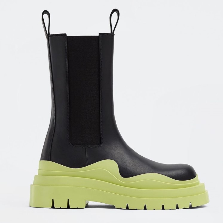 值得的,这双「雨靴」又再次成为2025秋冬的爆款,THE TIRE绿底靴本身就是超抢眼的造型亮点,即使上下身同色系黑,仍可穿出独特时髦味,同时可拉长腿部比例。2025秋冬登场的全新话题神靴款,将Bottega Veneta靴款魅力推向新高峰!IG上已可看到许多时尚潮人将THE TIRE皮靴踩上脚,使用植鞣小牛皮搭配三重橡胶靴底,制作过程繁复的THETIRE,抢眼圆形靴头、充满辨识度的波浪线条以及彩色鞋底,为日常穿搭更添造型亮点。THE TIRE有高筒、低筒两种版本。高筒款已成为BottegaVeneta靴的新经典;可搭配各种袜子创造多元造型乐趣的低筒款,不但是运动鞋的绝佳替代方案,更适合搭配今年超夯的宽裤,穿出质朴又时髦的风格。