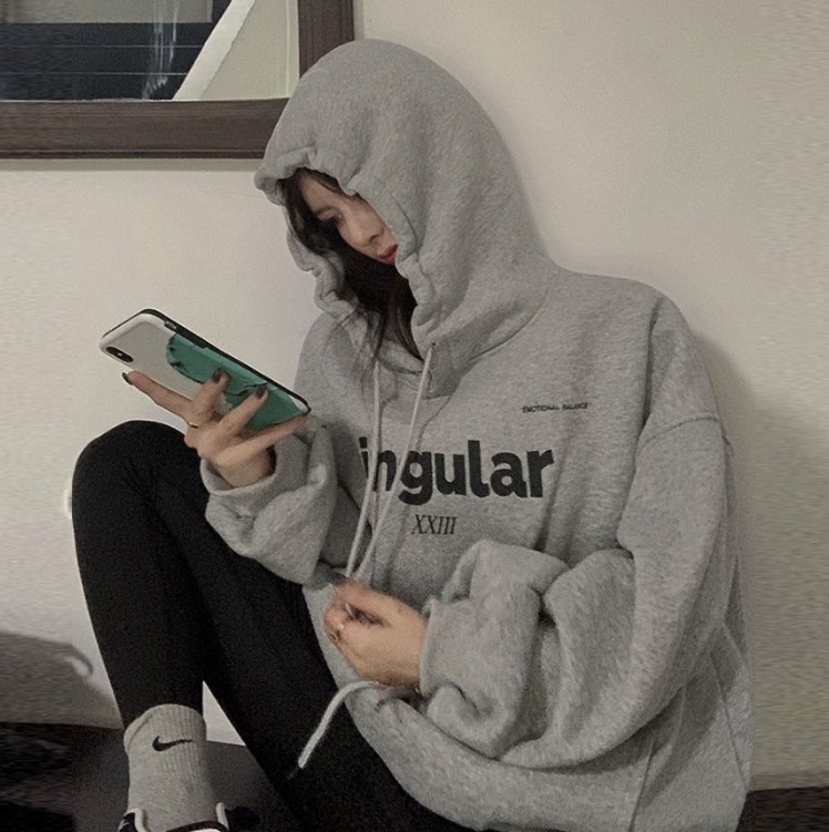 总有宝宝们问卫衣里面穿什么,今年流行内搭中长款T恤哦,比卫衣长一点点,里长外短,露出一截T恤衣摆,非常的时髦哦。