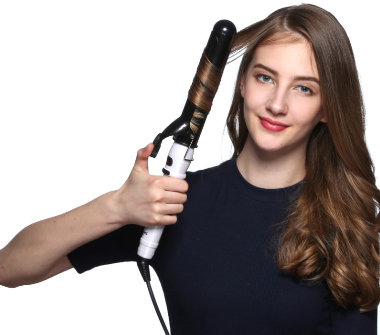 2、现在把头发分成两半,然后把头发编成两股的辫子,再编成辫子,然后用卷发棒简单地把头发末端卷曲起来。