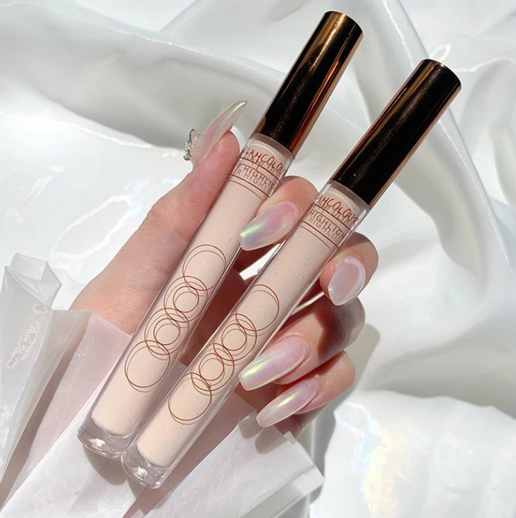 阴影的鼻梁使用修容棒可以直接用高光而不需要用阴影,因为本身鼻子就很立体了,只需要高光就可以起到不错修饰效果。方法是在鼻梁的位置涂上高光,向上涂到眉毛,然后将高光向上方和下方晕染开。