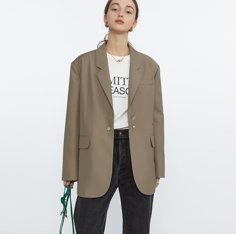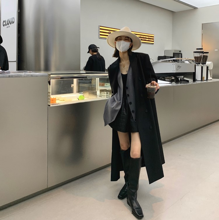 如果你穿的上衣是西服的话建议是可以将下角做成倒圆角的结构,这样会显得更加的时尚好看,这种装饰下角的方式是很多人都会使用的方法,或者将下角扎起来也是可以的。