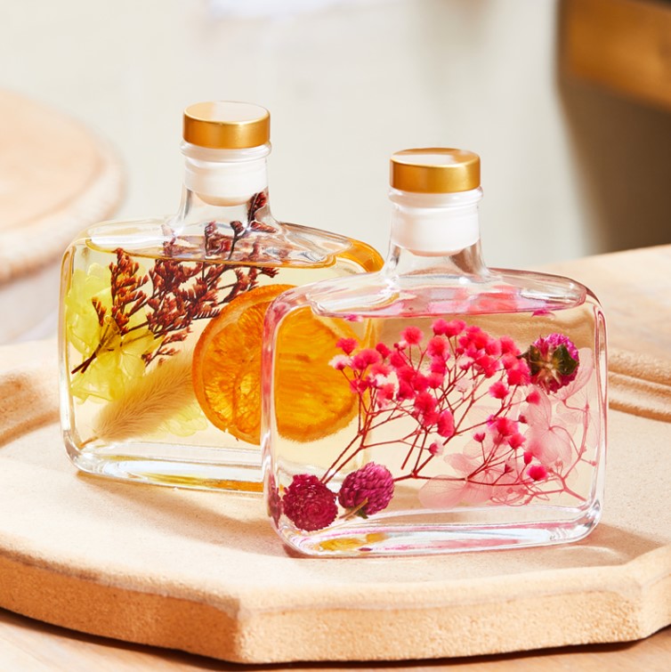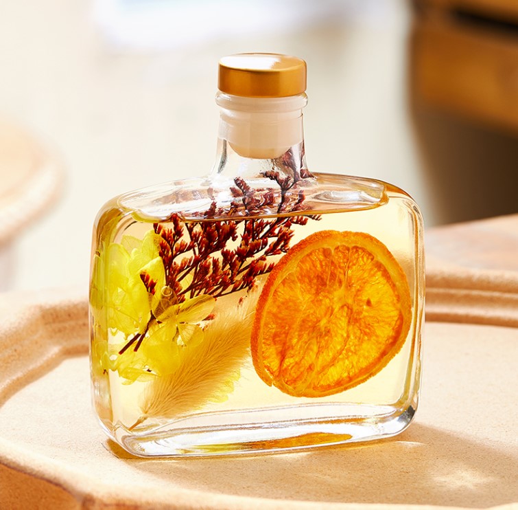 藤条香薰的原理:香薰液成品通过一定的载体(如藤条、草花、棉绳等)扩散到空气中。使空气弥漫芳香,达到改善空气、愉悦身心的等效果。所以我们可以用草花,棉绳代替。