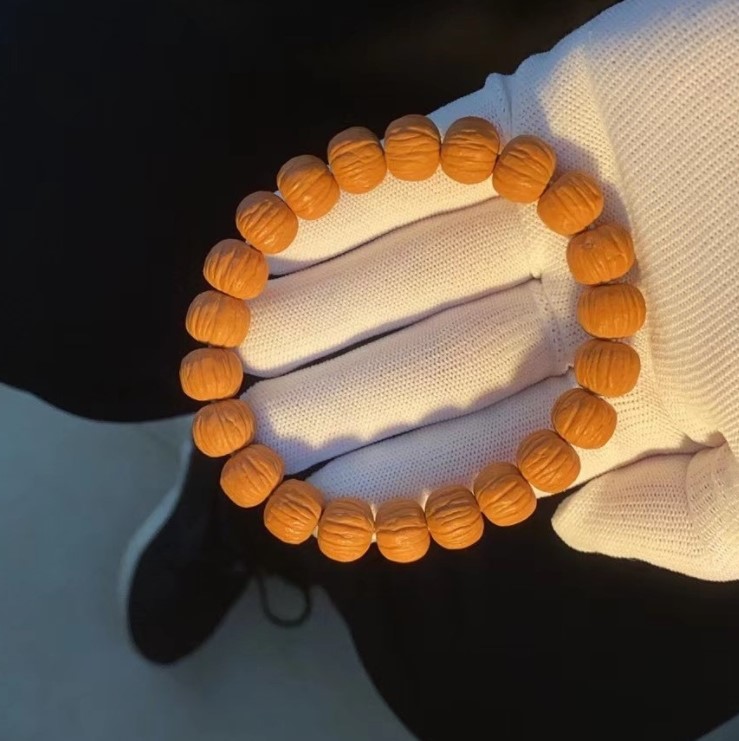 猴头核桃最贵的尺寸一般来说是越小越圆最好,大部分的核桃都是用来做手串,我们在把玩核桃之前西药先将手串冲洗干净,然后使用刷子刷干净,最好是戴上白手套进行把玩。